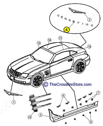 Chrysler Crossfire (2004-2008) Rear Logo Letters complete.