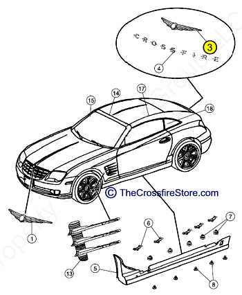 Chrysler Crossfire (2004-2008) Rear Wings Emblem.